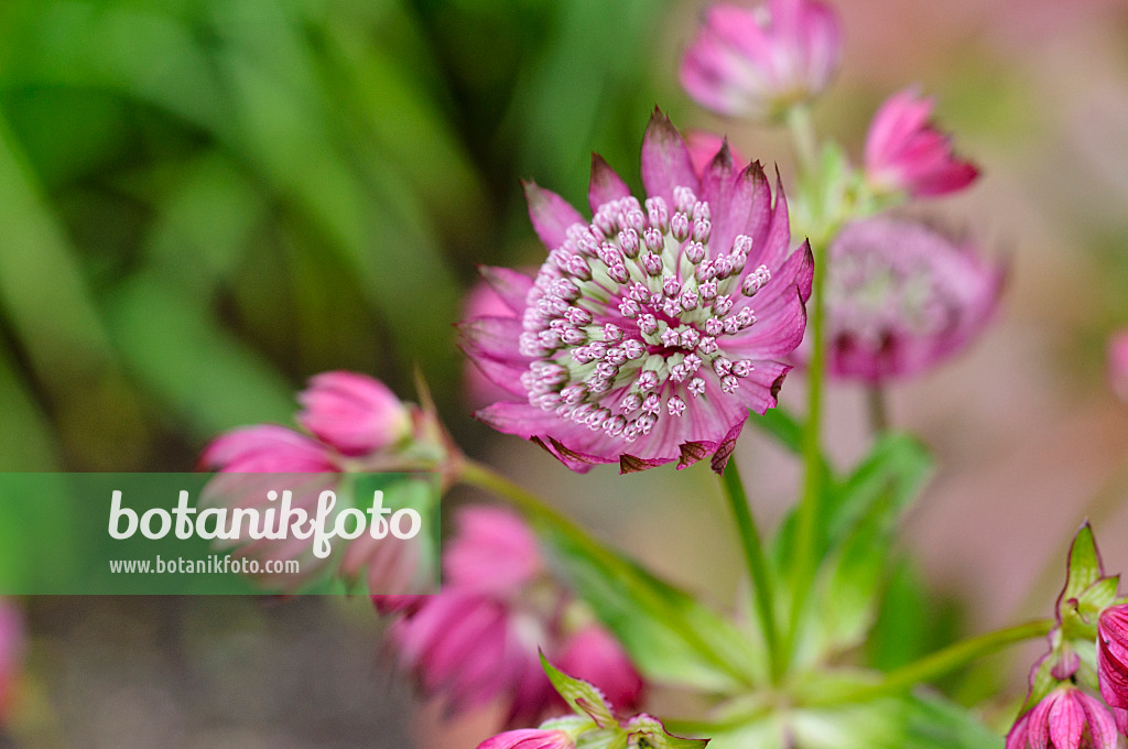 L'Astrantia major, aussi appelée grande astrance, est une plante vivace originaire d'Europe. Elle mesure 60 à 90 cm et fleurit de juin à août avec des fleurs blanches ou roses entourées de bractées décoratives. Elle préfère les sols frais et mi-ombragés, idéale pour les jardins naturels ou romantiques. Résistante et peu exigeante, elle attire les pollinisateurs.