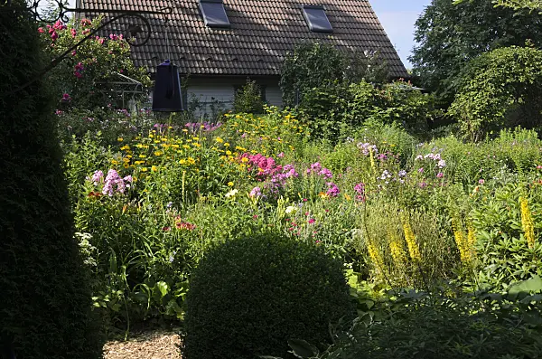 Héliopside (Heliopsis helianthoides) devant un gazébo