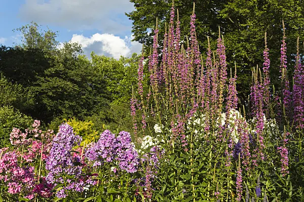 Hémérocalles (Hemerocallis), phlox paniculé (Phlox paniculata) et salicaire commune (Lythrum salicaria)