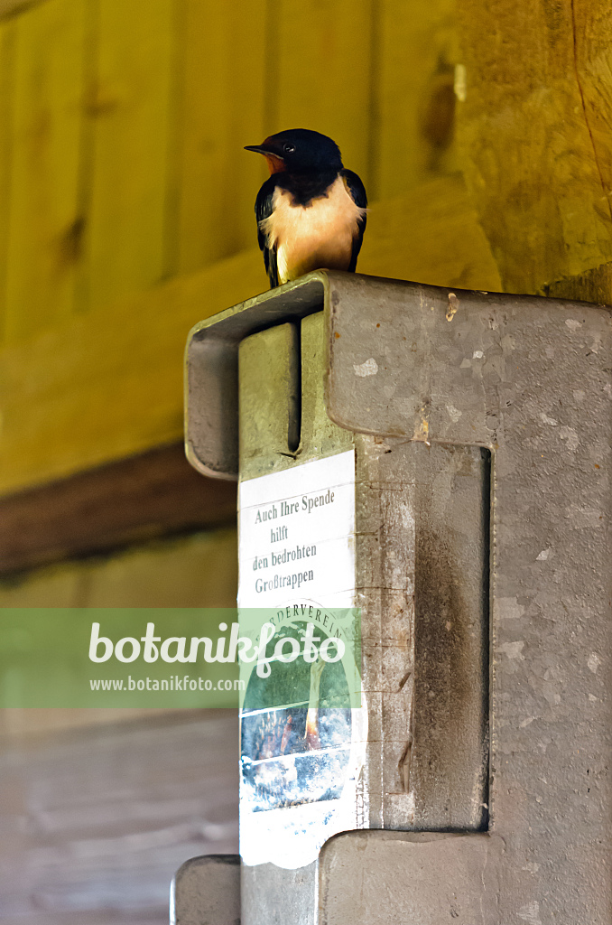 Hirondelle rustique (Hirundo rustica) sur une boîte pour les dons