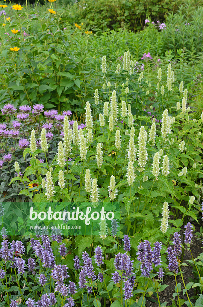 Hysope géante de Corée (Agastache rugosa 'Alba'), hysope anisée (Agastache foeniculum) et monarde (Monarda fistulosa)