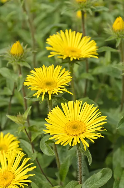 Inule (Inula magnifica 'Sonnenstrahl'), spirée filipendule (Filipendula rubra 'Venusta Magnifica') et épiaire (Stachys monnieri 'Hummelo')