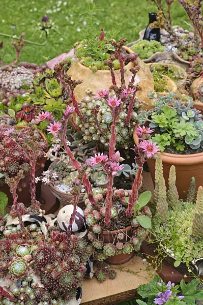 Joubarbe (Sempervivum) dans un pot de terre