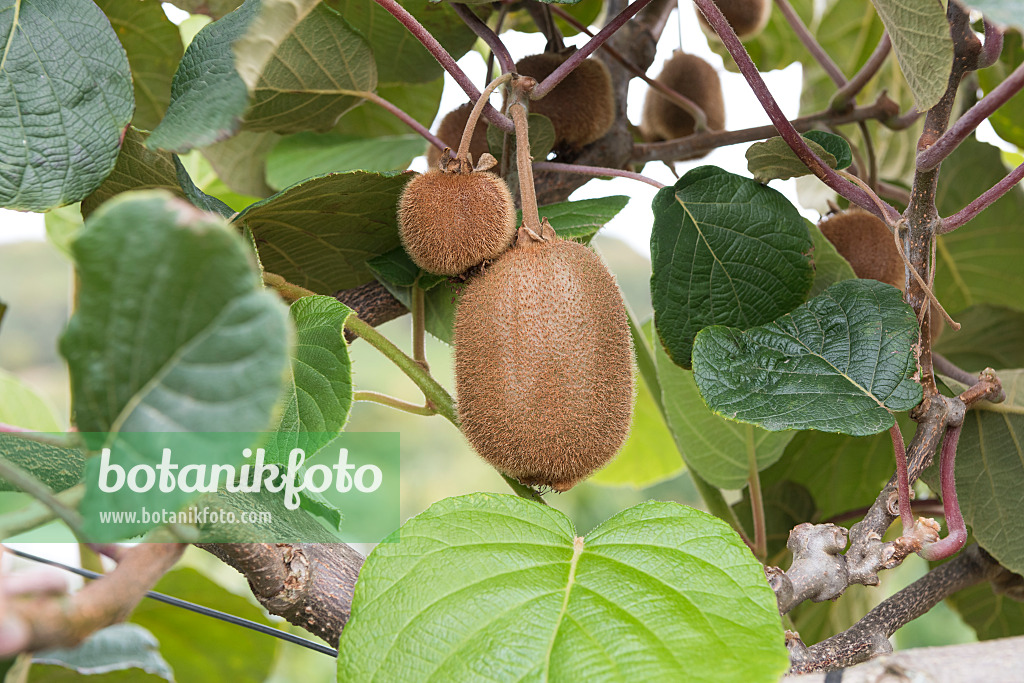 L'Actinidia deliciosa, communément appelé kiwi, est une plante grimpante originaire de Chine. Elle produit des fruits comestibles à la peau velue et à la chair verte et juteuse. Cette espèce nécessite un climat tempéré et une pollinisation croisée pour fructifier. Elle est cultivée pour ses fruits riches en vitamine C.
