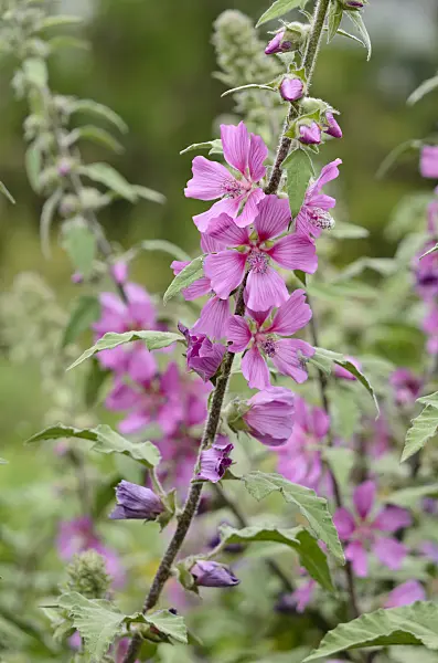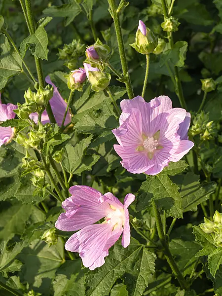 La Lavatera trimestris, aussi appelée mauve annuelle, est une plante ornementale appréciée pour ses grandes fleurs roses ou blanches en forme d'entonnoir. Elle fleurit en été, atteint 60 à 120 cm de haut et préfère les sols bien drainés et les expositions ensoleillées. Facile à cultiver, elle attire les pollinisateurs.