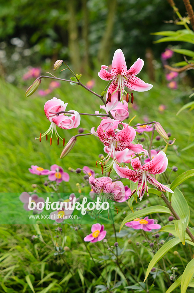 Lis oriental (Lilium speciosum 'Rubrum') et anémone du Japon (Anemone hupehensis var. japonica)