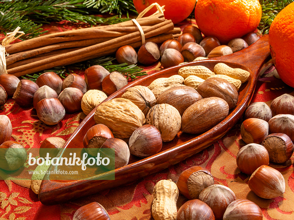 Noisetier franc (Corylus maxima), noyer commun (Juglans regia) et arachide (Arachis hypogaea)