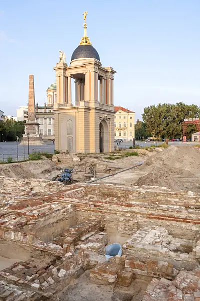 Obélisque et portail Fortuna, Alter Markt, Potsdam, Allemagne