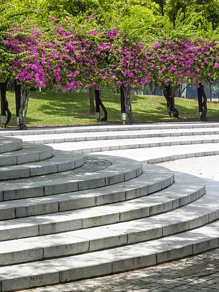 Objet d'art sur un piédestal en pierre dans un jardin tropical, Singapour