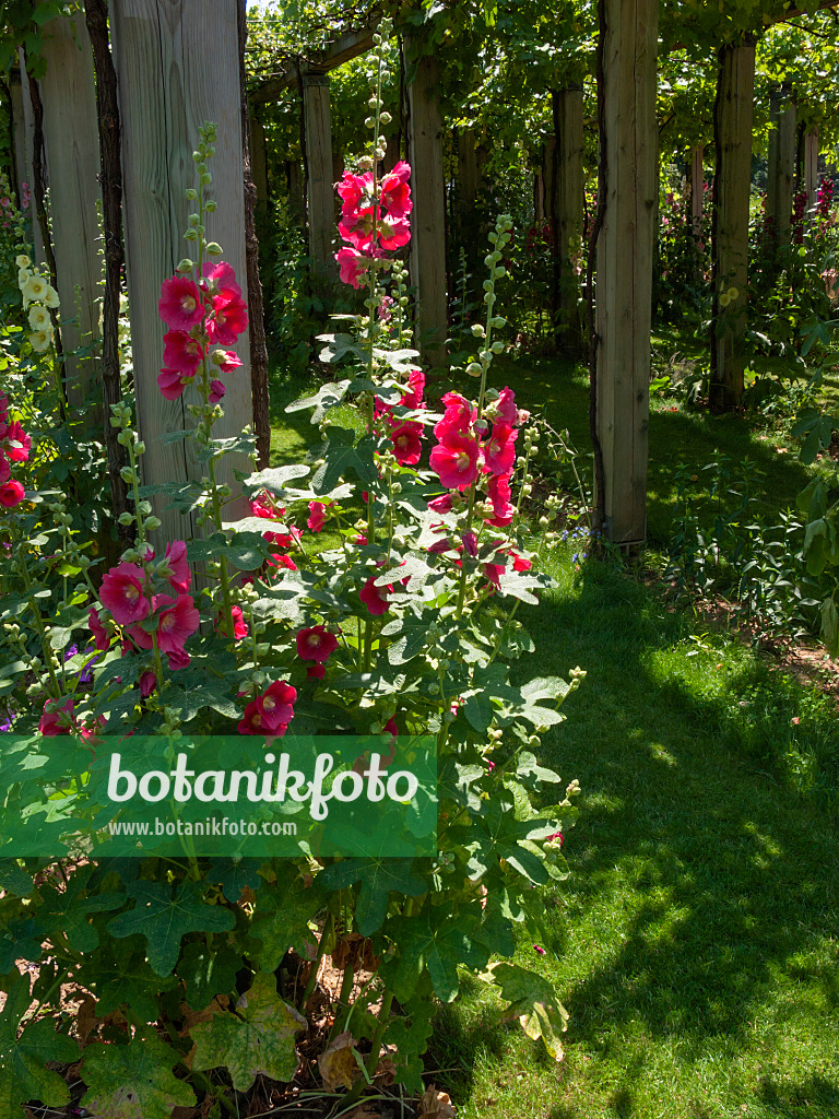Alcea rosea, aussi appelée rose trémière, est une plante vivace ou bisannuelle appréciée pour ses grandes fleurs colorées. Elle peut atteindre 2 à 3 mètres de haut et fleurit en été. Originaire d'Asie et d'Europe, elle est souvent utilisée dans les jardins pour son aspect ornemental. Elle préfère les sols bien drainés et les expositions ensoleillées.