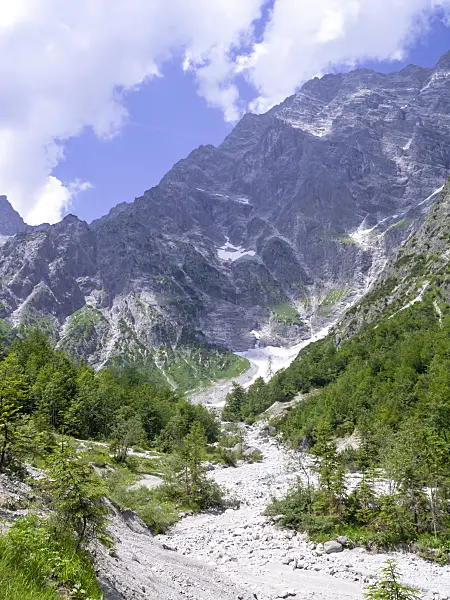 Pente de montagne enneigée, parc national de Berchtesgaden, Allemagne