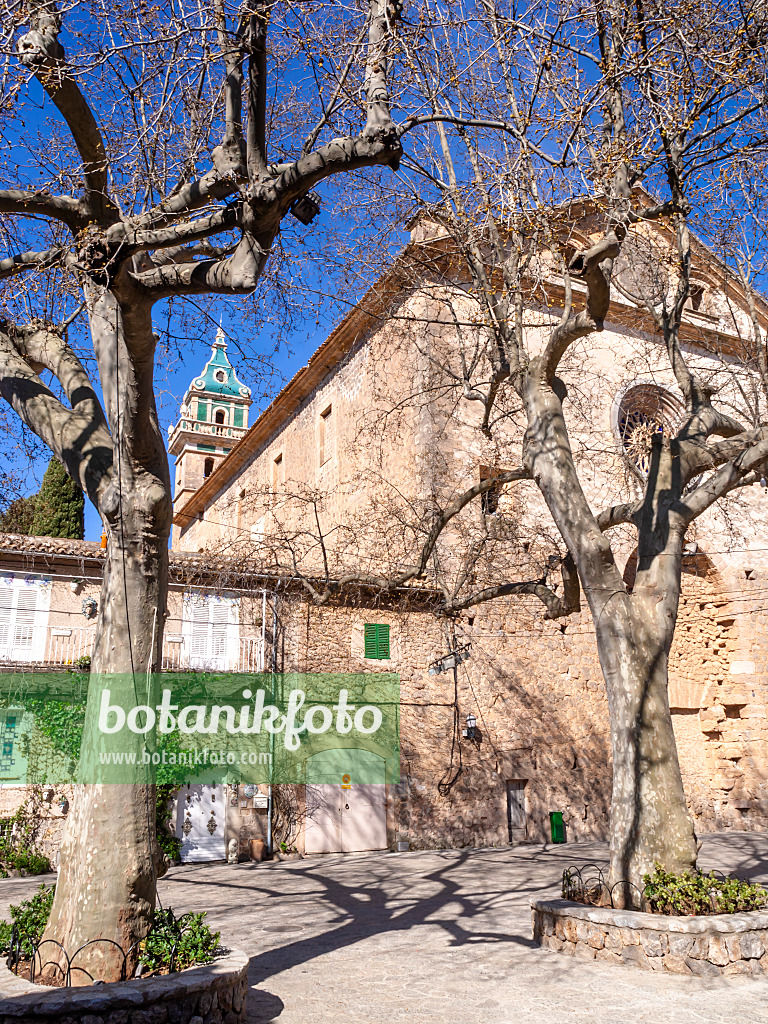 Platane d'Orient (Platanus orientalis) devant la chartreuse, Valldemossa, Majorque, Espagne