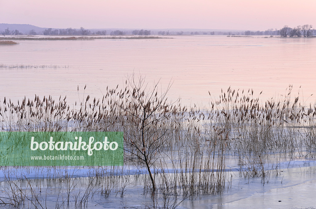 Prairie humide immergée et glacée, parc national de la vallée de la Basse-Oder, Allemagne
