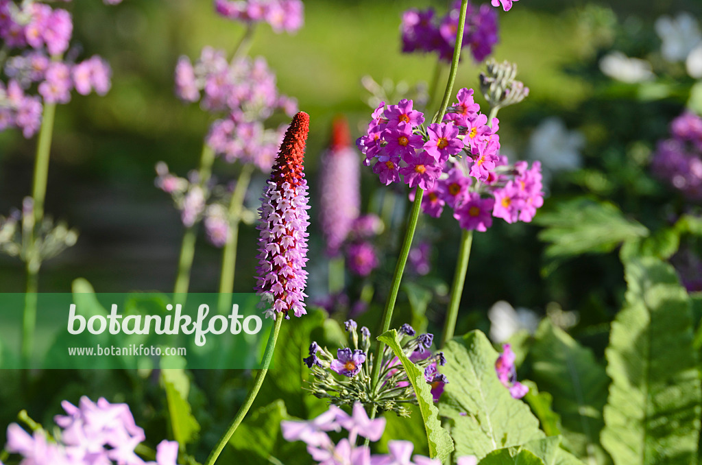 Primevère du père Vial (Primula vialii) et primevère à étages (Primula beesiana)