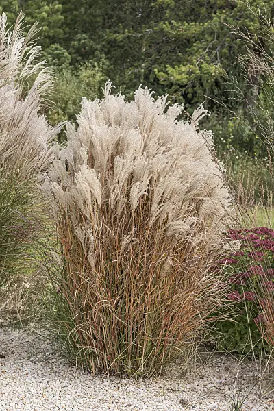 Le Miscanthus sinensis, aussi appelé "herbe à éléphant", est une graminée vivace originaire d'Asie. Elle peut atteindre 2 mètres de haut et produit des inflorescences plumeuses en été. Résistante et peu exigeante, elle est appréciée pour son aspect ornemental et sa rusticité. Elle préfère les sols bien drainés et une exposition ensoleillée.