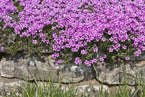 Tulipes (Tulipa), brunnère à grandes feuilles (Brunnera macrophylla syn. Myosotis macrophylla) et phlox à stolons (Phlox stolonifera 'Violet Velvet')