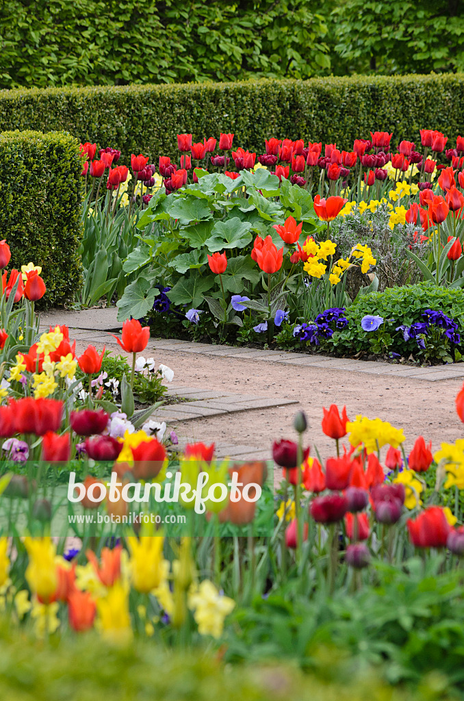 Tulipes (Tulipa), violettes (Viola) et narcisses (Narcissus)