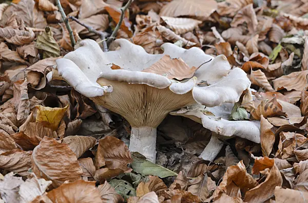 Lactaire velouté (Lactarius vellereus) entre des feuilles de hêtre