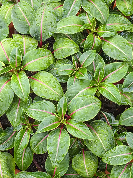 Euphorbe (Euphorbia hypericifolia 'Diamond Frost') et balsamine (Impatiens walleriana) dans une fontaine