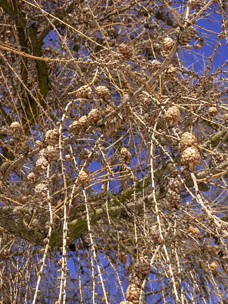 Mélèze commun (Larix decidua) avec des fleurs femelles et mâles