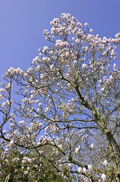 Magnolier de Chine (Magnolia x soulangiana) dans un jardin de devant