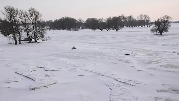 Rives inondées et glacées de l'Elbe, réserve de biosphère du paysage fluvial de l'Elbe, Allemagne