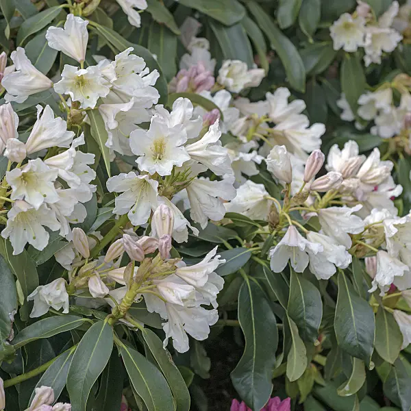 Rhododendron hybride à grandes fleurs (Rhododendron Cunningham's White)