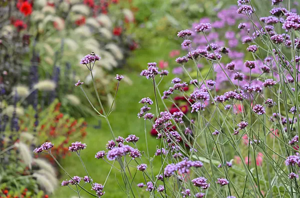Pennisetum setaceum 'Rubrum' et verveine de Buenos Aires (Verbena bonariensis)