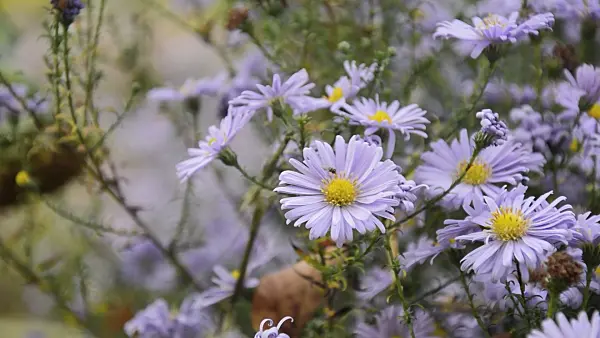 Aster nain d'automne (Aster dumosus 'Blaue Lagune') et hélénie (Helenium)
