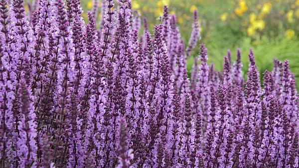 Dahlia (Dahlia Bishop of Oxford) et sauge farineuse (Salvia farinacea)